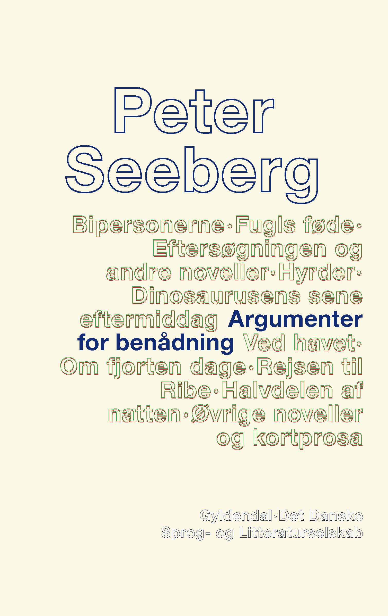 Udgivelse i den nye serie tekstkritiske og kommenterede udgaver af forfatteren Peter Seebergs romaner, noveller og kortprosa. Serien, der bliver på 11 bind, udgives i et samarbejde mellem Gyldendal og Det Danske Sprog- og Litteraturselskab.