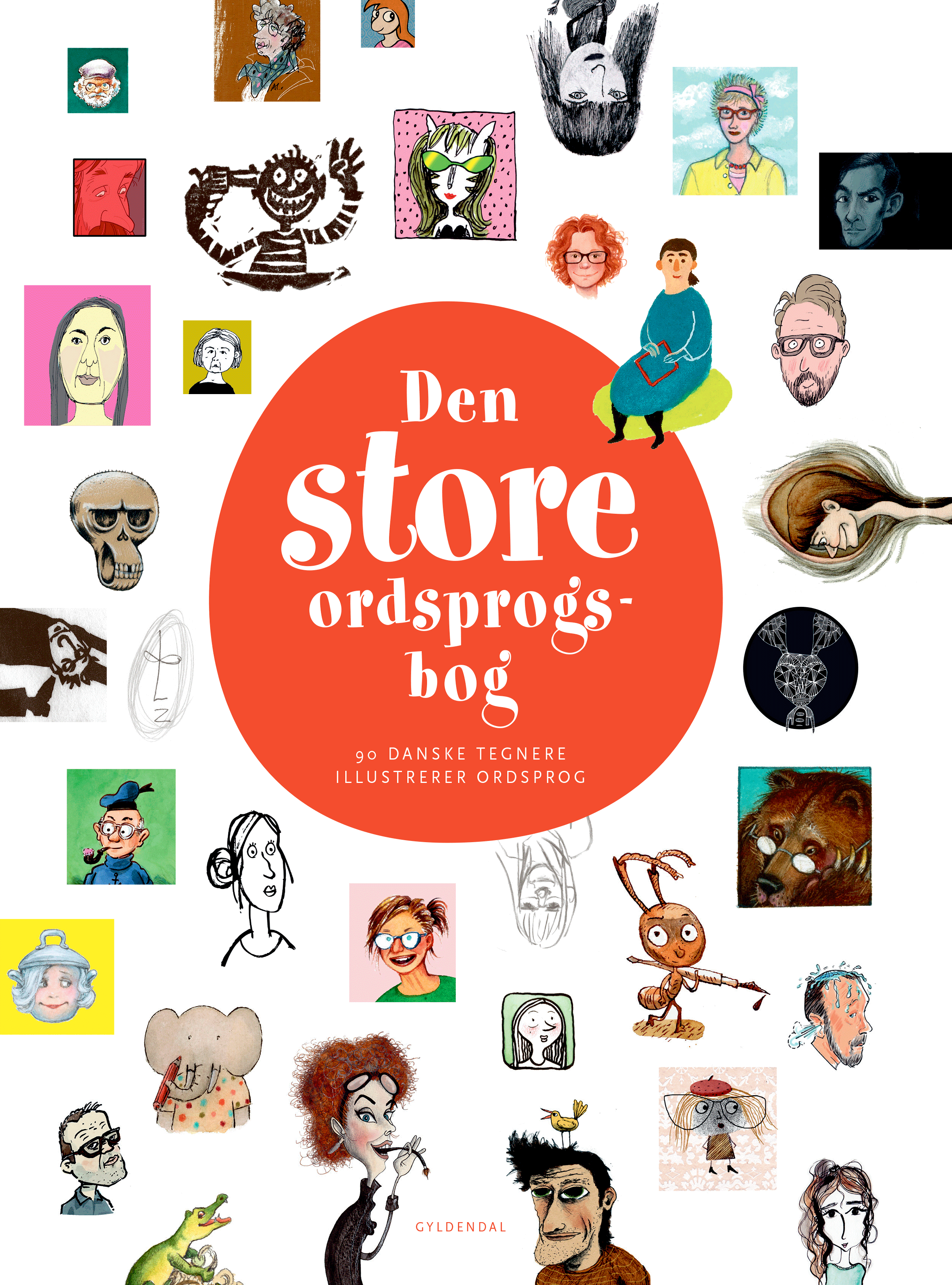 I Den store ordsprogsbog finder du 150 ordsprog fra hele verden – 90 af dem med billeder af tegnere fra illustratorgruppen i Dansk Forfatterforening.