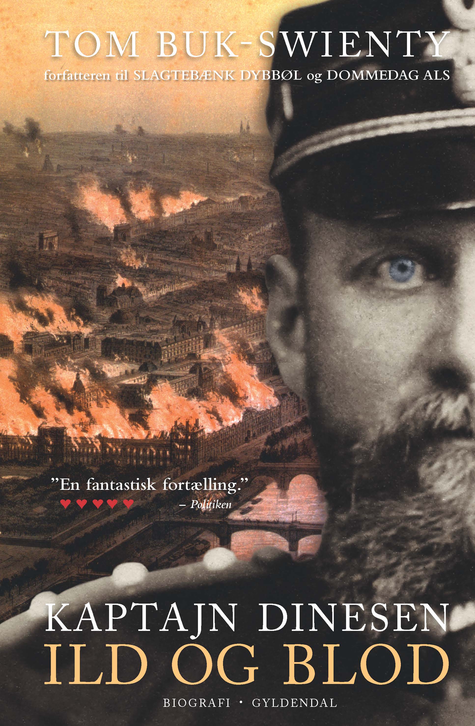KAPTAJN DINESEN – ILD OG BLOD er en stor biografisk fortælling i to bind om den aristokratiske eventyrer, kriger, jæger, politiker og forfatter Wilhelm Dinesen (1845-95). Dinesen var i sin samtid kendt som ”Kaptajn Dinesen”. I dag er han måske bedst kendt som Karen Blixens far. Men kaptajnen fortjener i den grad sin egen plads i historien. Det var ikke fra fremmede, at hans verdensberømte datter fik sin eventyrlyst og fortælleglæde. Kaptajn Dinesens eget liv havde, som det fremgår af Tom Buk-Swientys nye værk, selv karakter af én lang, fantastisk fortælling.
