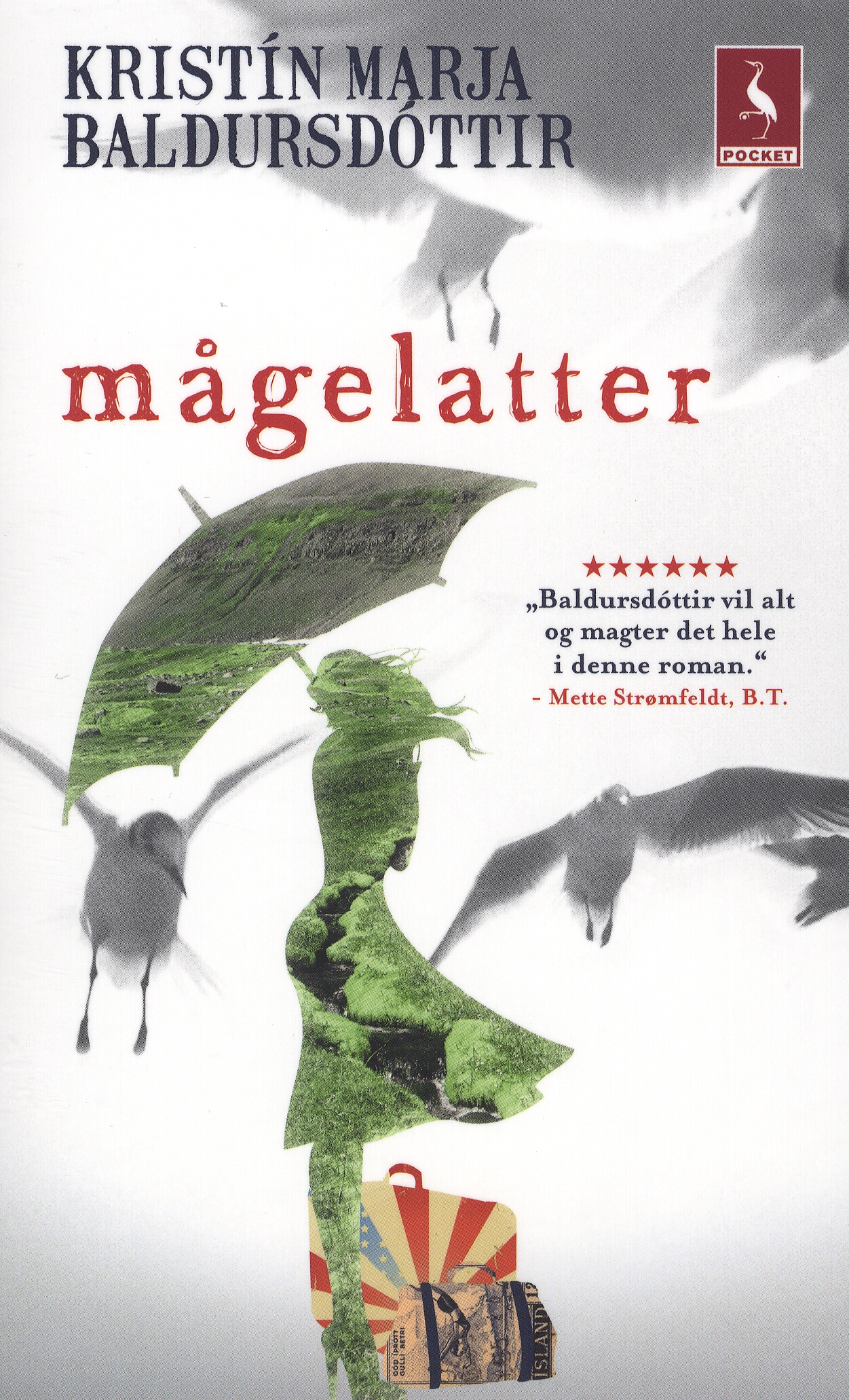 Kristín Marja Baldursdóttir debuterede som forfatter med romanen MÅGELATTER i 1995, som udspiller sig i et lille samfund i 50’ernes Island, hvor alting vendes op og ned, da den unge enke Freyja vender hjem fra USA. Kristín Marja Baldursdóttir indleder med denne fortælling forfatterskabets karakteristiske blanding af tids- og samfundsbillede, krimi og familiesaga.