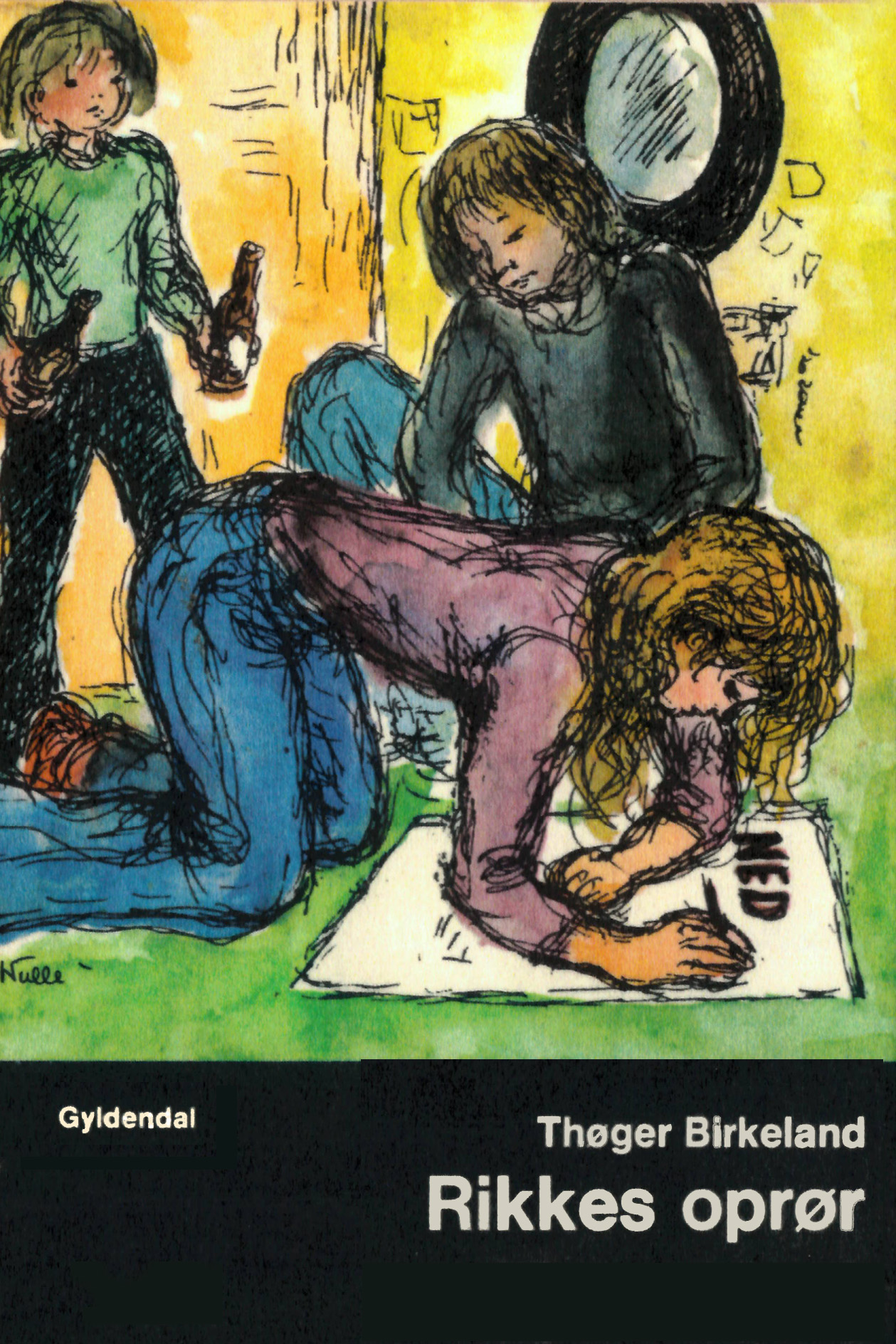 Børnebogen Rikkes oprør udkom oprindeligt på Gyldendal i 1973. Nulle Øigaard illustrerede Thøger Birkelands vers.