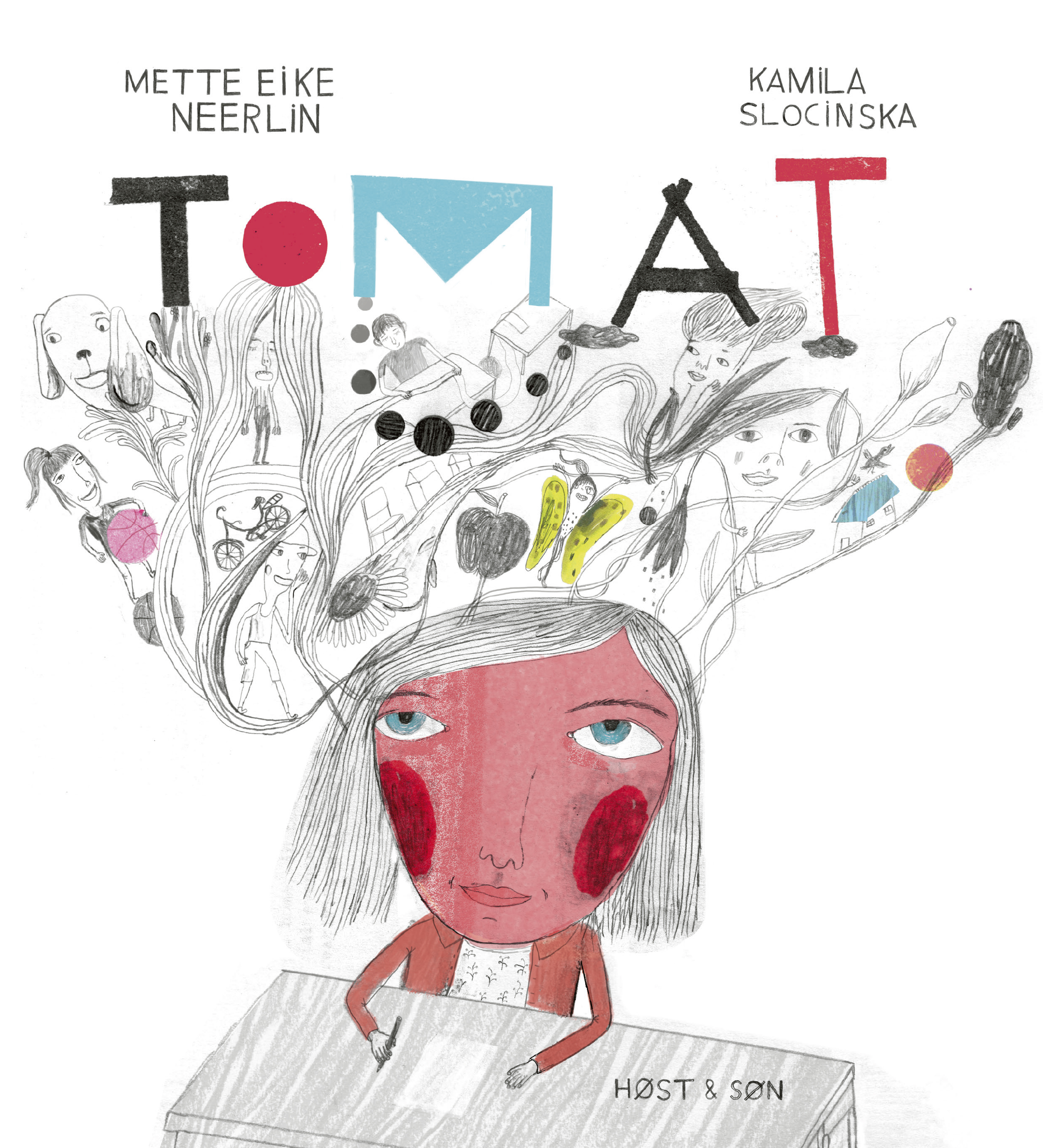 Tomat fortæller historien om en pige, som sjældent gør opmærksom på sig selv, men til gengæld tænker, føler og observerer meget. Billedbogen fortæller om generthed og den særlige fornemmelse af ens omgivelser, som ofte følger med hos sensitive børn. Dette bliver understreget i Kamila Slocinkas illustrationer, hvor en vis del af handlingen udspiller sig.