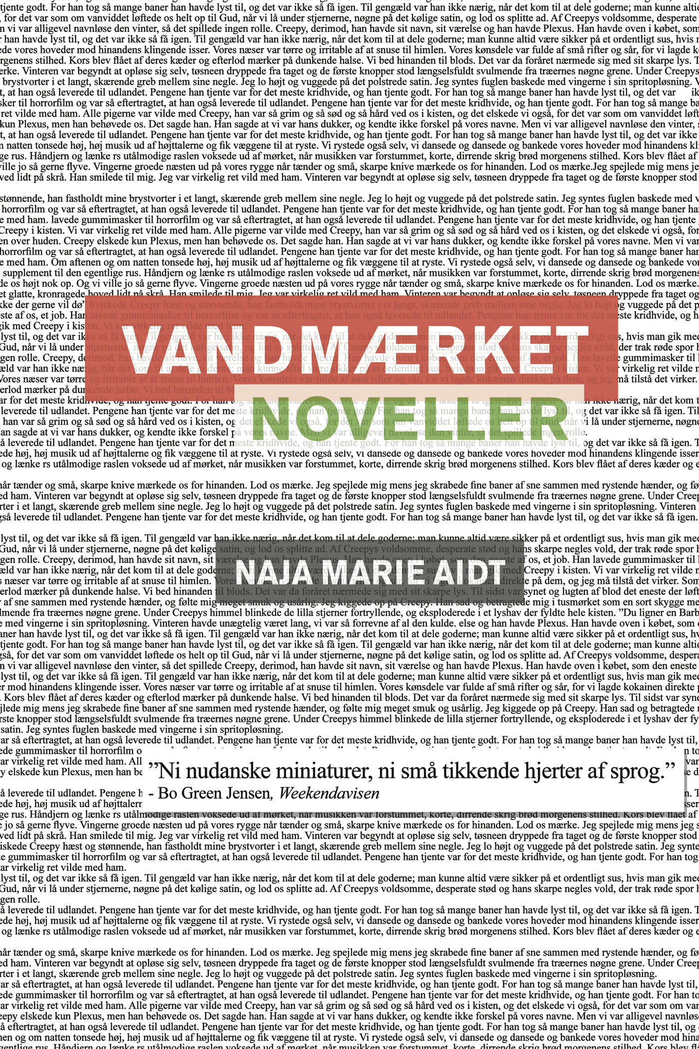 Naja Marie Aidts på én gang realistiske og surrealistiske fortællinger om mennesker der på forskellige måder befinder sig i livets randområder. Narkomaner, psykisk syge, afvigere - og helt almindelige, skrøbelige individer befolker denne både groteske og gribende novellesamling.