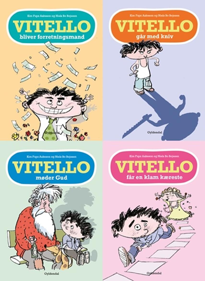 'Vitello går med kniv - og andre historier' udgør bind 5-8 i Kim Fupz Aakesons nye, succesfulde serie om drengen Vitello. Lydbogen er indlæst af Nicolas Bro.